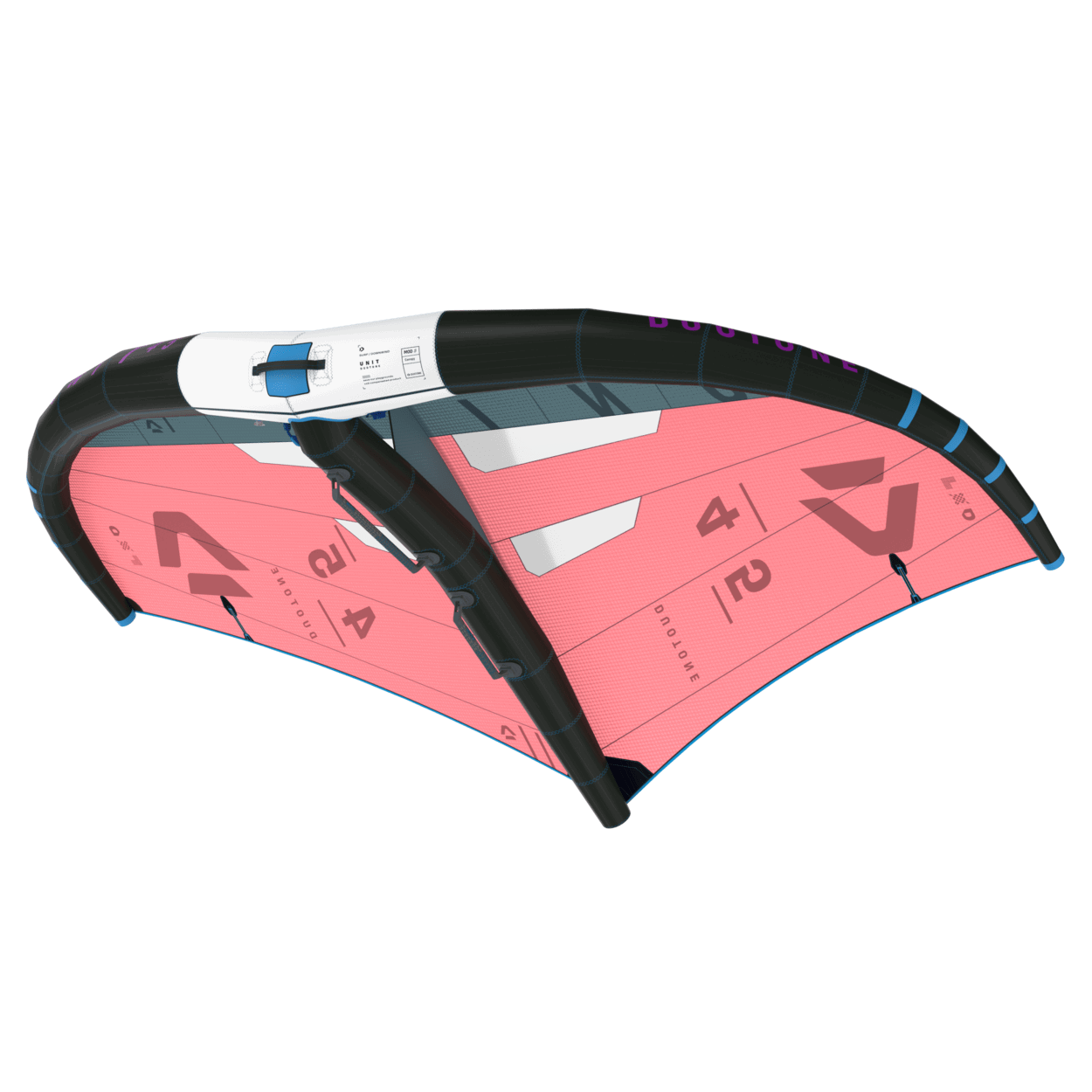 The 2024 Unit is yet taken another step ahead of the pack and is spiced with a new level of riding comfort, improved drift stability and features you simply don’t want to miss.The Duotone Unit led the way in Wing design over the past years. Many of our competitors tried to copy and match the performance and handling, yet with the combination of wing design, technology and materials the Unit is still the benchmark out there.The 2024 model brings us another step forward with the introduction of a long carbon front handle allowing one-handed riding, an angled strut, which increases the riding comfort and with tweaks on the outline, twist and canopy tension further improving the Units power delivery and drift stability.Designer Ken Winner optimized the angles of the strut in the handle area, resulting in a more natural riding position with the back arm being straighter and not constantly pulled in, which is especially noticeable when riding toe side.The second great improvement to the handling is the introduction of a significantly longer carbon front handle, allowing the rider to bring the front hand further back and fly the wing one-handed for minutes. A benefit which opens doors to new tricks and a level of riding comfort you don’t want to miss.With further refinements to the outline and curvature as well as the twist and tension of the MOD3 canopy, the new Unit flies more precise and stable when sheeted in and has a more neutral drift when flagged out on the wave.Whether you’re into pure and effortless carves in the surf, want to boost big airs with solid hang time or simply want to go straight forward with plenty of lift and power - the 2024 Unit is a real Winner – not only by the Designers Name – equally by the outstanding performance and its handling!